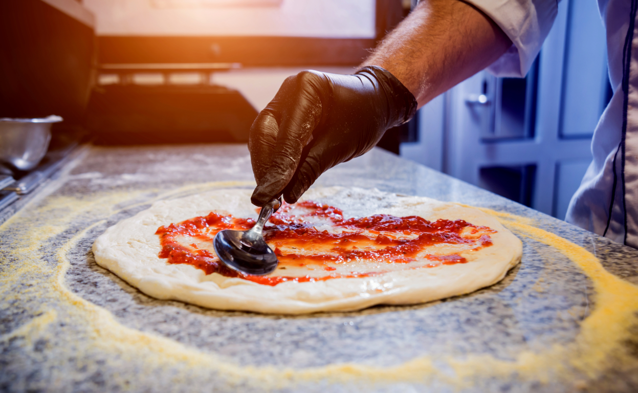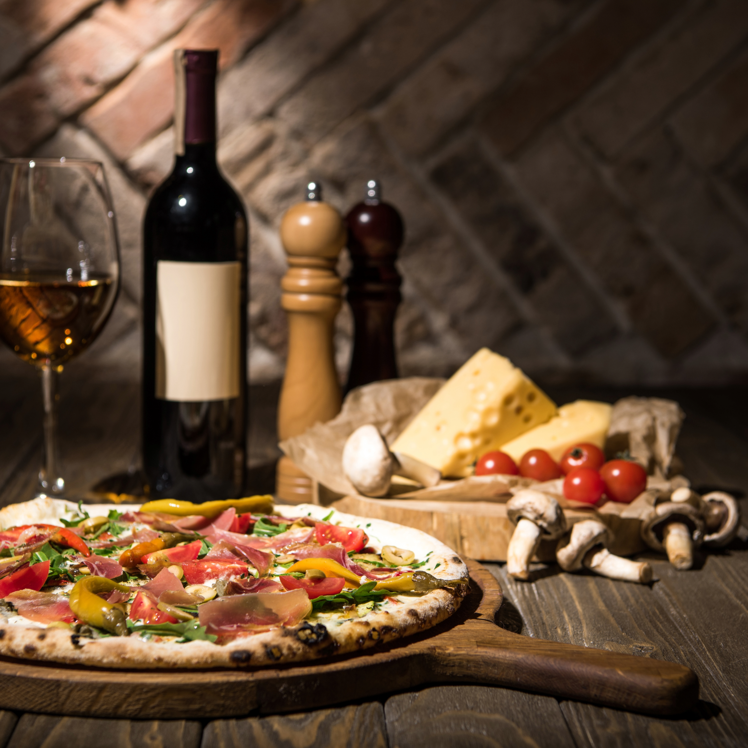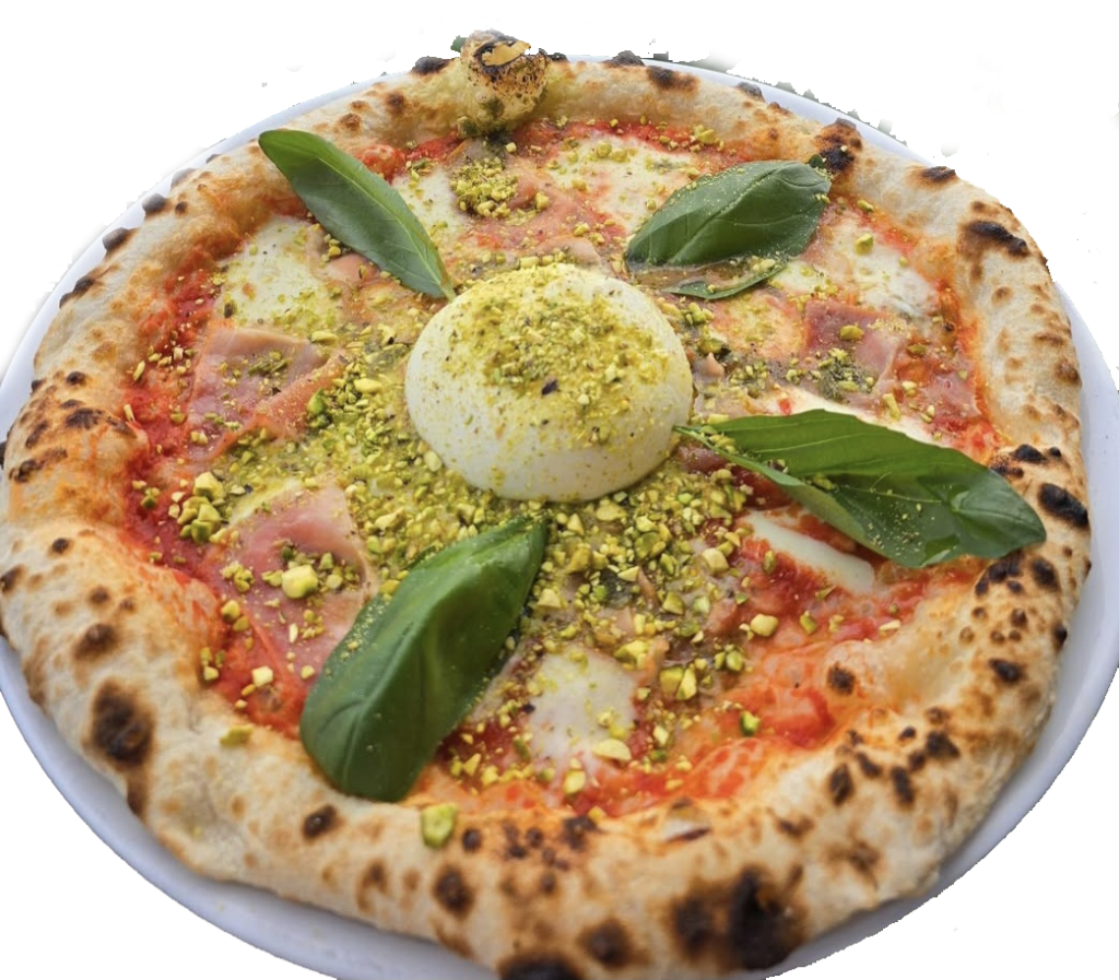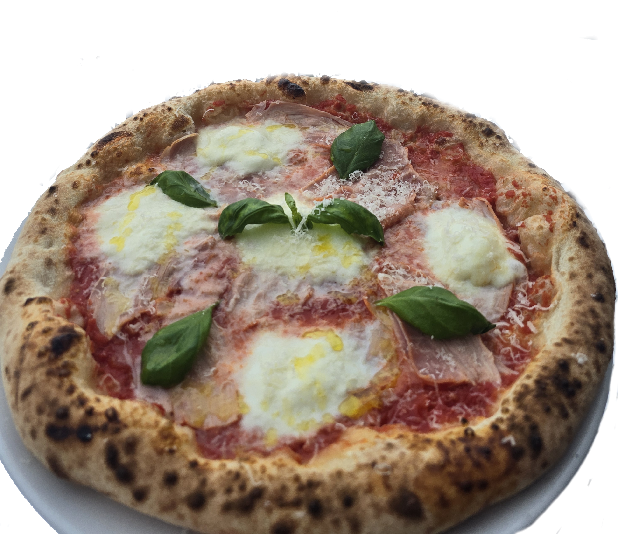 Tomaattikastike San Marzano tomaateista, fior di latte mozzarellaa, Tuore Herkkusieni, cotto-kinkkua,